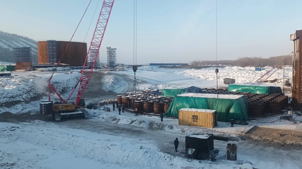 284,5 миэтэрэ үрдүктээх Өлүөнэ күргэтин сүрүн пилонугар коффердам эркинин таҥыы саҕаланна