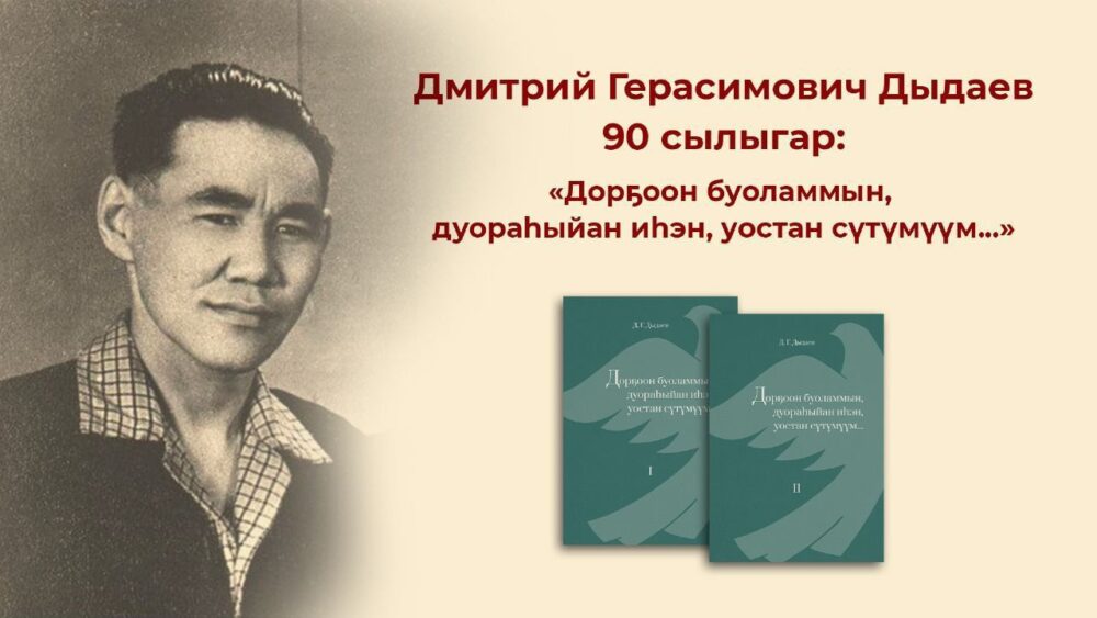 СӨ Национальнай бибилэтиэкэтин устуоруйаҕа саалатыгар алтынньы 10 күнүгэр, күнүс 15 чаастан поэзияны сэҥээрэр ааҕааччылары Одьулуунтан төрүттээх талааннаах поэт, тылбаасчыт Дмитрий Герасимович Дыдаев төрөөбүтэ 90 сылыгар аналлаах «Дорҕоон буоламмын, дуораһыйан иһэн, уостан сүтүмүүм…» кинигэ сүрэхтэниитигэр күүтэллэр.