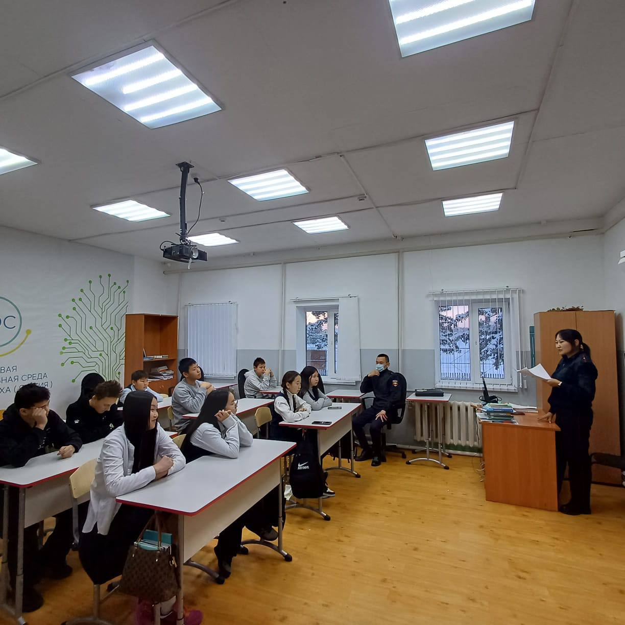 Бу күн оскуола 9 комплект кылааһыгар профилактическай өйдөтөр сыаллаах нэһилиэк олохтоох дьаһалтатыттан Надежда Сивцева, Нарыйаана Уваровская, Намнааҕы КДН эппиэттээх сэкирэтээрэ Лена Меркулова, Намнааҕы ис дьыала отделыттан участковай Иван Тихонов, ПДН инспектора Арина Павлова, «Ромашка» уһуйаан иитээччитэ Анастасия Григорьева үөрэнээччилэргэ кылаас чаас ыыттылар.