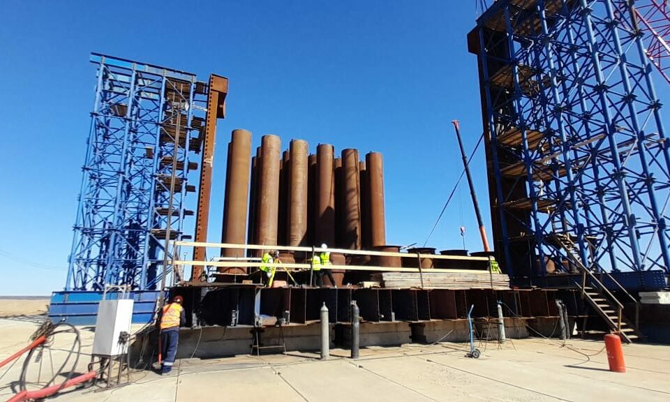 Коффердамнар муоста үс пилонун тутууга өрүскэ кураанах зоналары тэрийэргэ наадалар. Конструкциялар муус барыытын тулуйарга уонна үлэ бириэмэтин аҕыйатарга уустук климат усулуобуйатын учуоттаан оҥоһуллубуттар. Кинилэри хомуйарга, тэринэргэ барыта 9695 туонна тимир конструкция наада.