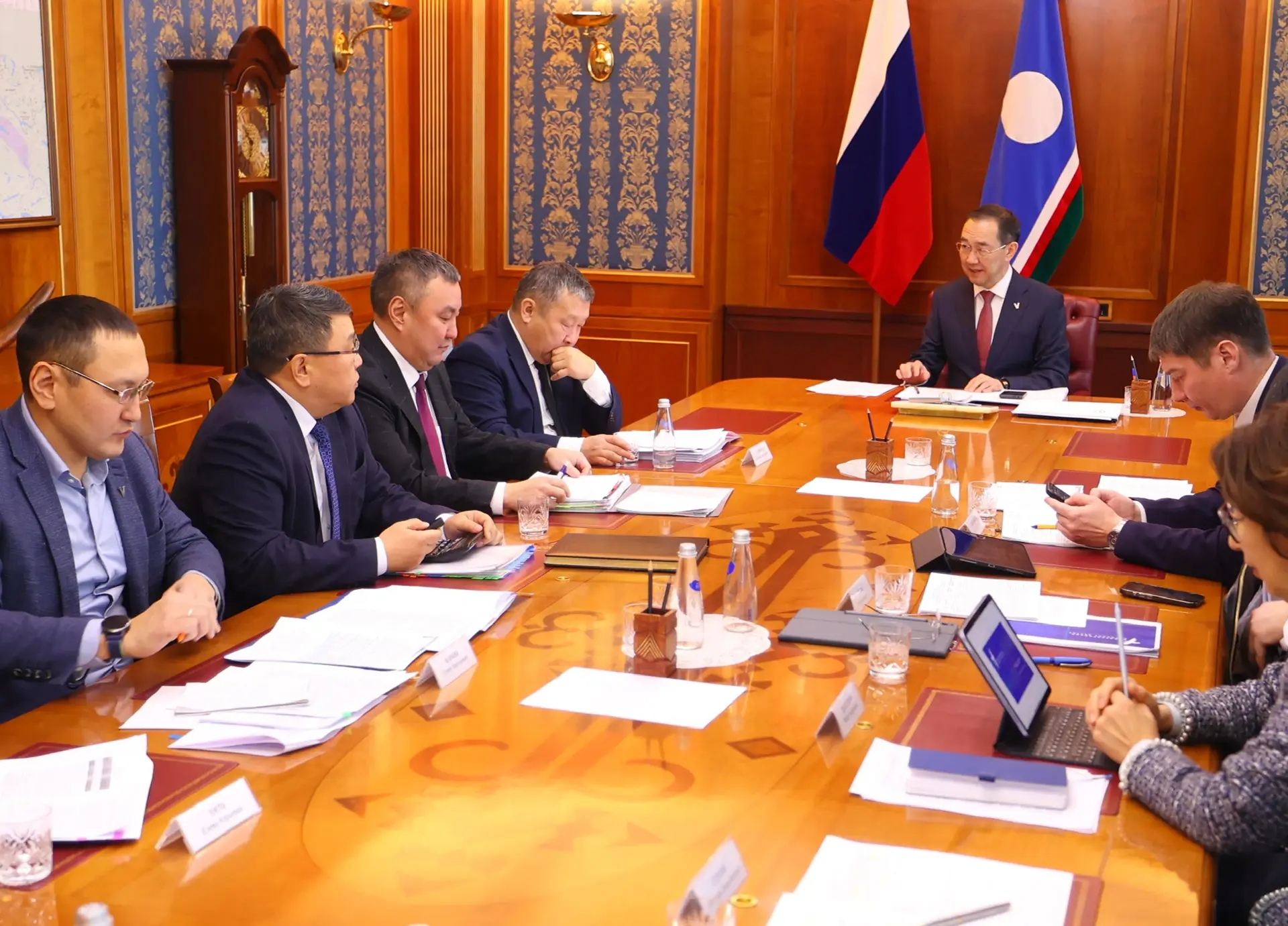 Тохсунньу 24 күнэ. Айсен Николаев Уһук Илин эрэгийиэннэрин баһылыктарын кытта Юрий Трутнев 2025 сыл түмүктэрин таһаарар уонна 2026 сыл соруктарын туруорар тохсунньутааҕы мунньаҕар кыттыыны ылла.