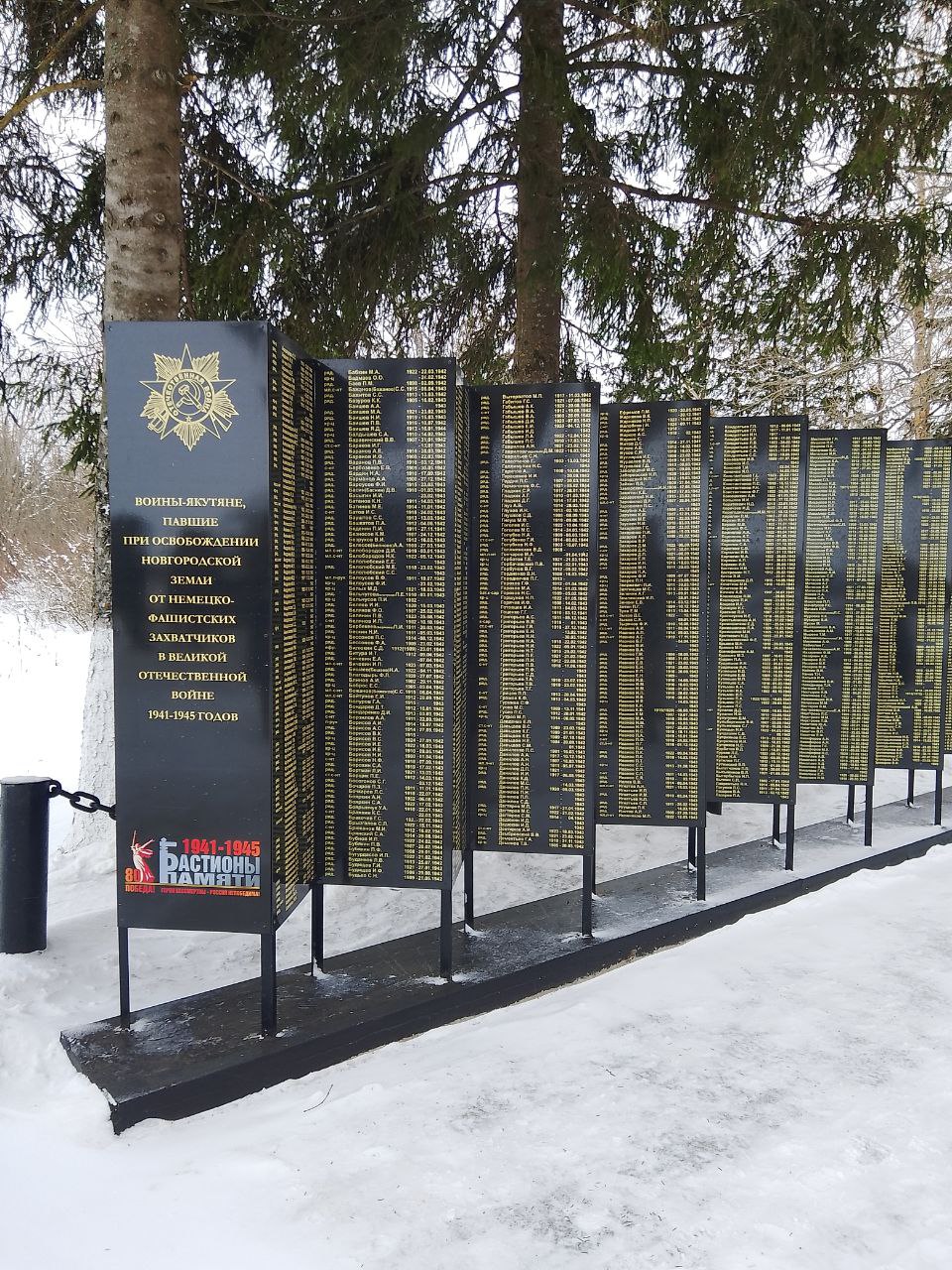 Ол курдук маҥнай Буреги дэриэбинэ таһыгар Шимск — Старая Русса суолугар турар «Воинам-якутянам — защитникам Старорусского района» диэн бэлиэҕэ тохтоон, тыыннаах сибэкки дьөрбөтүн уурдубут. Манна даҕатан эттэххэ, ааспыт 2025 сылга өрөспүүбүлүкэтээҕи «Бастионы памяти» бырайыак чэрчитинэн Аҕа дойдуну көмүскүүр улуу сэрии сылларыгар Новгород сирин-уотун көмүскээһин кэмигэр олохторун толук уурбут 1589 саха буойуттарынн ааттара-суоллара суруллубут анал билиитэлэрэ туруоруллубута.