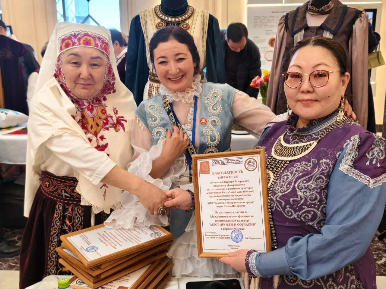 Быйыл дойдуга биллэриллибит Норуоттар сомоҕолоһууларын сылларын чэрчилэринэн кулун тутар 22 күнүгэр Москваҕа ВДНХ Казахстан павильонугар «Мост дружбы и согласия» эрэгийиэннэр икки ардыларынааҕы төрүт култуура бэстибээлэ буолан ааста. Көҕүлэччилэринэн Лаура Акылбаева салайааччылаах уонна Баян Нурсапарова тэрийээччилээх «Путь к традициям» коммерческайа суох автономнай тэрилтэ буолла. Ол туһунан РФ суруналыыстарый Сойууһун чилиэнэ Анфиса Слепцова СИА-ҕа суруйда.