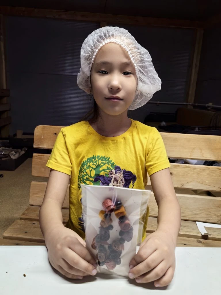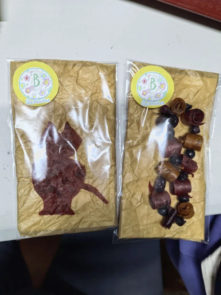 Вераника Лиханова пастилаттан уонна сублимированнай отонтон минньигэс оҕуруону тиһэн көрдөрүөҕэ. «Барыта бэйэбит айылҕабытыттан, Саха сирин отоно, саахара, араас минньитэр эбиилигэ суох, бэлэххэ олус табыгастаах, оҕолор сиирбитин сөбүлүүбүт. Мин бу минньигэс аспар логотибын уруһуйдаан оҥордум», — диэн санаатын үллэстэр. Кыысчаан бу күн «Амтанынан ханнык отон буоларын таай» диэн оонньуу ыытарга бэлэмнэнэр.
